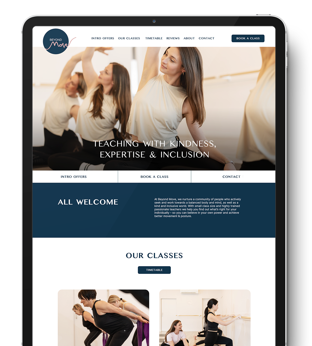 As a studio that prides itself on being "beyond" just exercise, the client needed a digital platform that communicated their inclusive ethos. The site had to manage a complex schedule of diverse classes—from Peto Pilates for neurological conditions to pregnancy yoga—while remaining incredibly easy for a local community to navigate.
